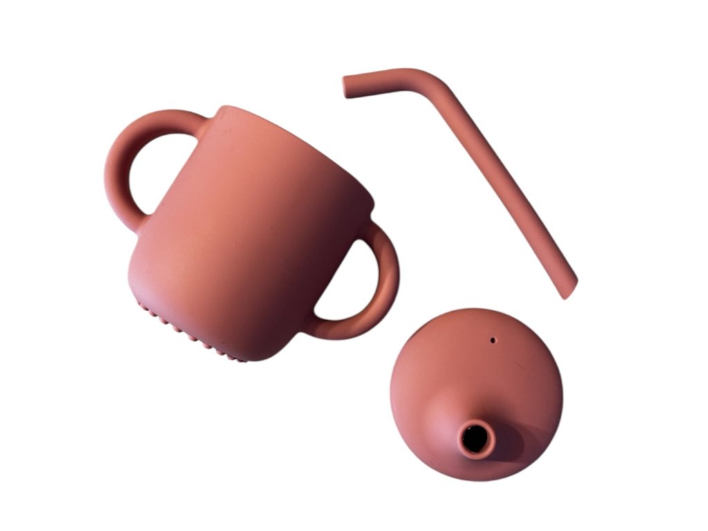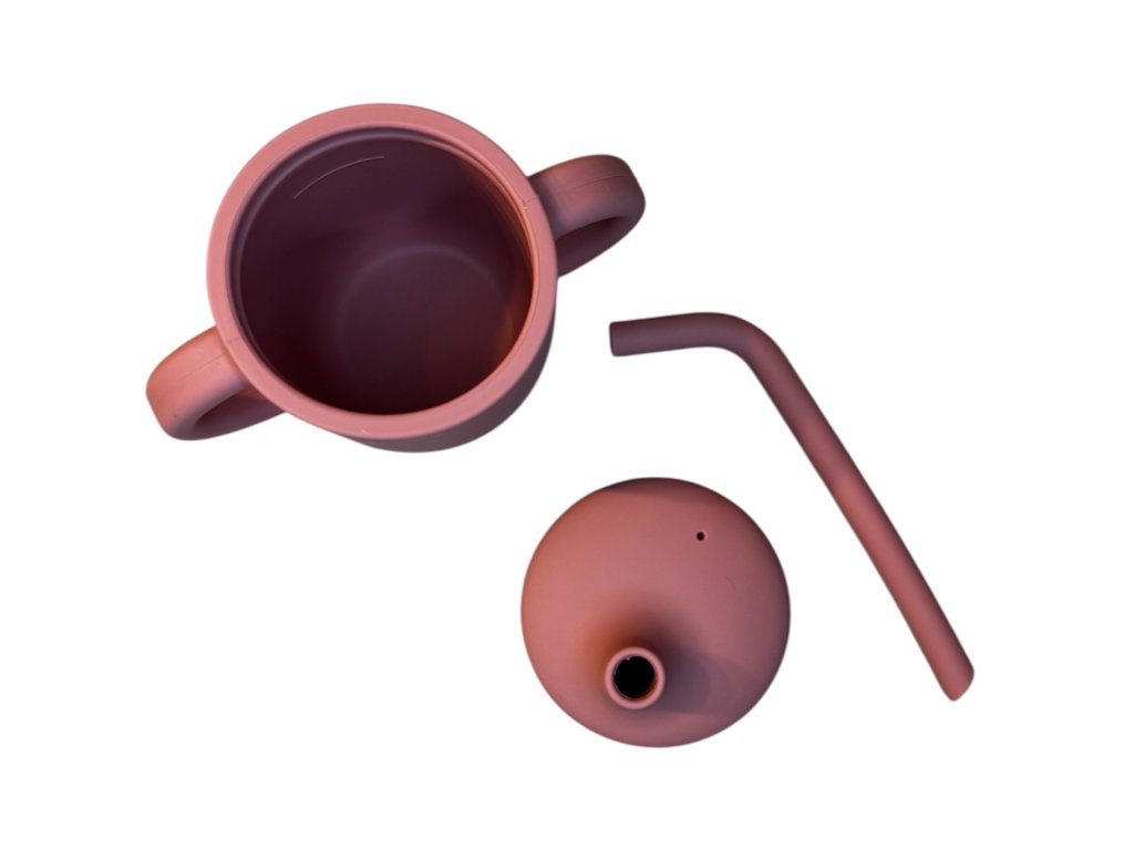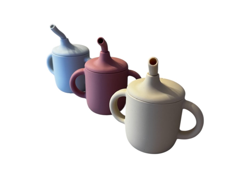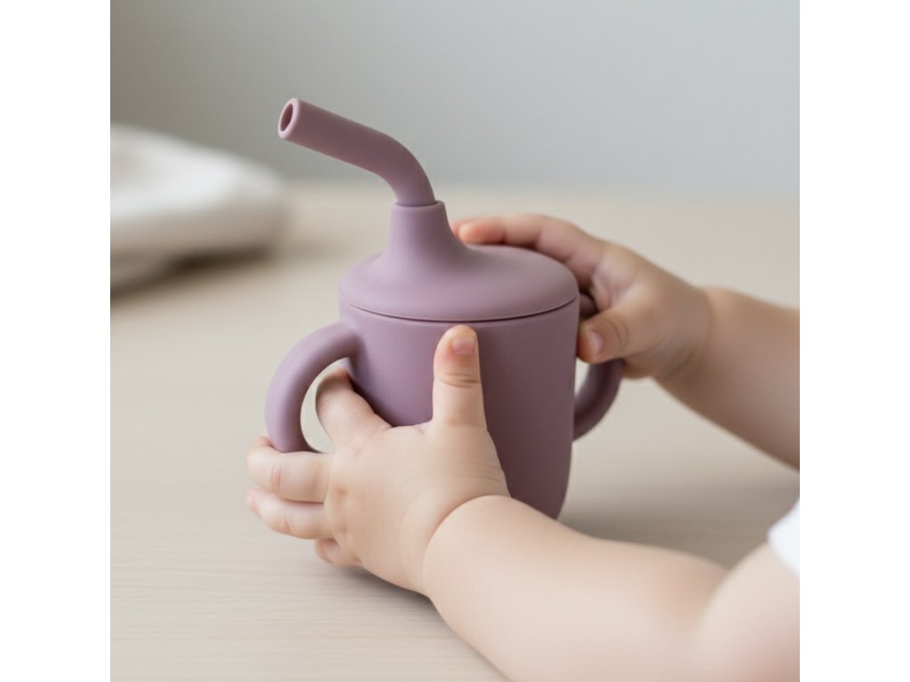Silikónový hrnček s viečkom, slamkou a dvoma uškami je ideálny pre malé detské rúčky. Pomáha pri učení samostatného pitia, nevyteká a je bezpečný pre deti. Praktický, odolný a krásny doplnok do každej detskej výbavy.