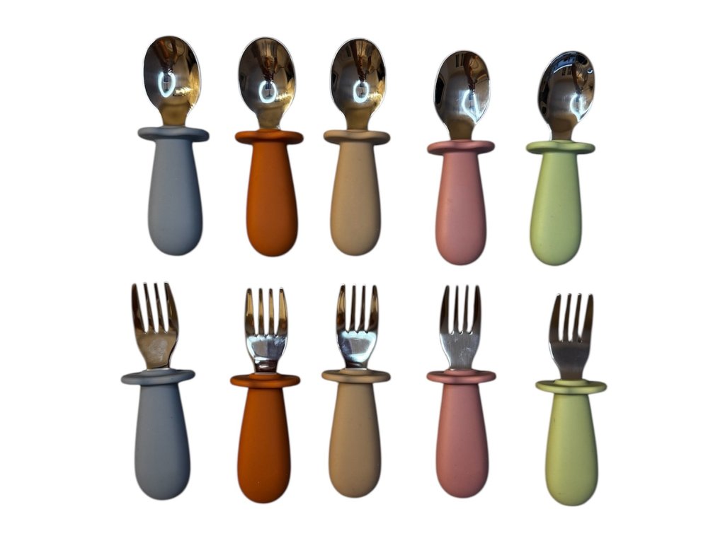 Farebné detské učiace príbory sú ideálne na prvé samostatné papanie. Silikónová rukoväť sa ľahko drží v malých ručičkách. Vhodné pre bábätká a malé deti, ľahko umývateľné a praktické na doma aj na cesty.
