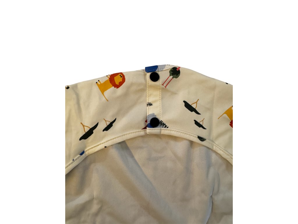 Praktický a zároveň rozkošný podbradník s rukávmi, ktorý chráni oblečenie vášho drobca pri jedení. Vďaka praktickému strihu s rukávmi chráni veľkú časť oblečenia a predné vrecko zachytí zvyšky jedla a uľahčí upratovanie.